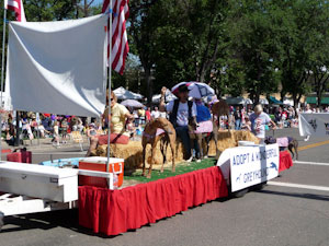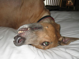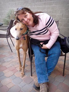 Oh our goofy boy! This guy was a real find. We were at an annual parade in Prescott and he was on the Greyhound float. He had a damaged back leg, so he got to ride. He is stunning, his color is red fawn with a bluish cast. In some lights he almost looks a little purple. Deb fell in love with him, and we know what that means...