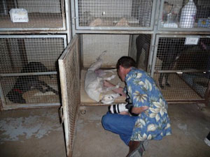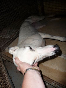 October 2009, we went to a tour of the Dorsey kennels in Avondale. Knowing that the Phoenix track would close down in December, we wanted to see the kennels again once again before anything happened. There are dozens of hounds there, and we've done the tour before. But this time was different. Nick saw a little girl with a great personality. When he sat down in front of her kennel, she wriggled closer and put her head in his hand. She was a real sweetie. We did something we never did before, we asked to adopt her when her career was over...fully expecting it would be a couple of years.